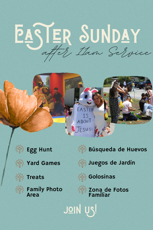 Acompáñenos en una significativa experiencia de Viernes Santo, mientras reflexionamos sobre el sacrificio de Cristo en la cruz y nuestra necesidad de redención. Este servicio especial incluirá una adoración poderosa, una experiencia interactiva para todas las edades y clases dedicadas para niños, desde los más pequeños hasta el quinto grado.